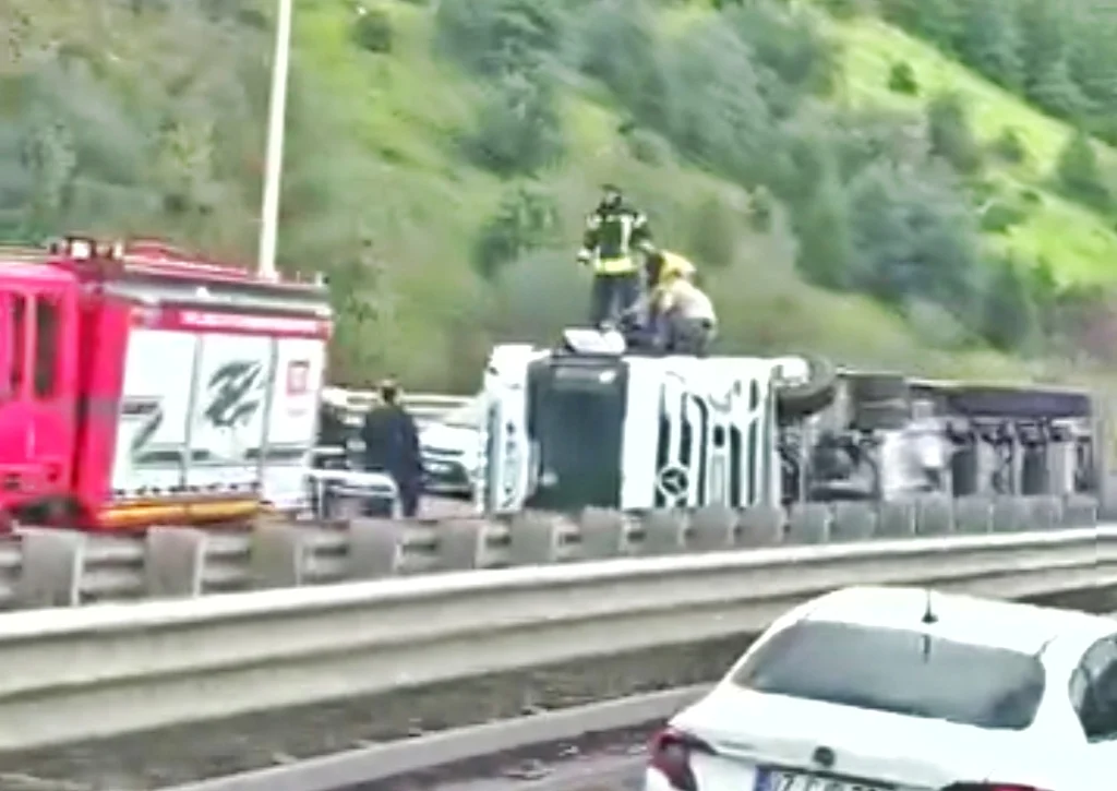 Hereke’de mıcır yüklü TIR devrildi, yol trafiğe kapandı